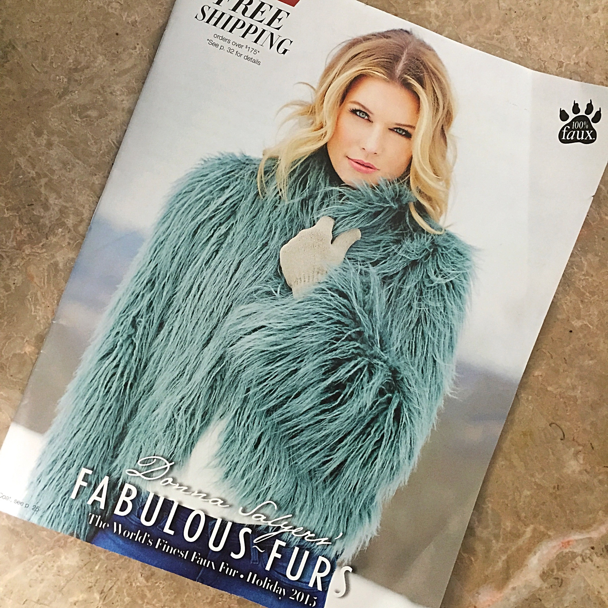 There's nothing more exciting like seeing your work on the cover of a magazine or catalog.  The Donna Salyers' Fabulous Furs holiday 2015 catalog is out and filled with some new and "fabulous" items for women, men, children and your home.